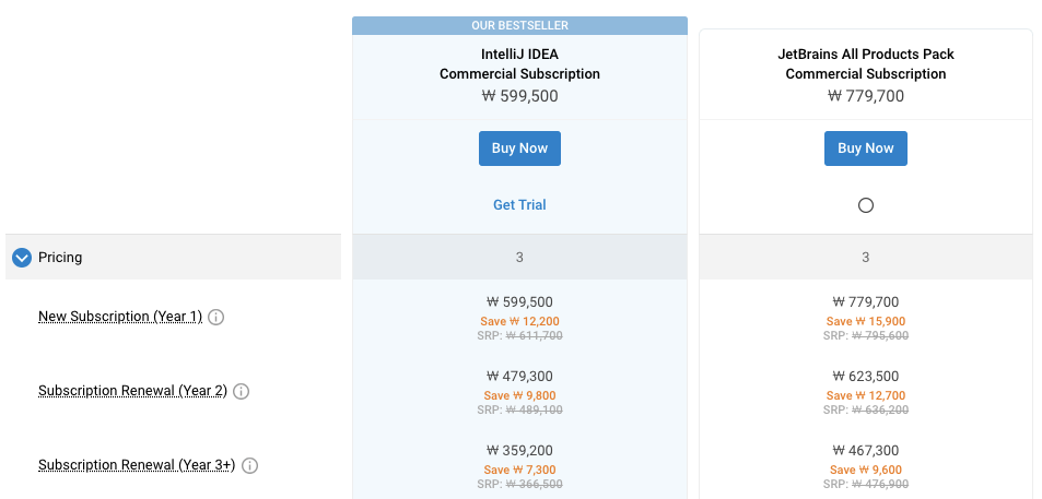 첫 구매일 경우 IntelliJ만 구매한다 해도 1년 치 구독료가 약 60만 원입니다.