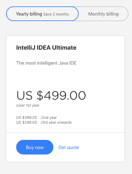 Even if you purchase only IntelliJ for the first purchase, the subscription fee for one year is about 500 dollar.